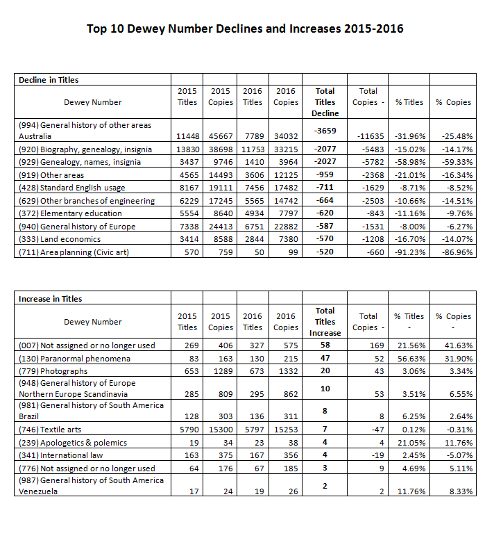 Note: Dewey Numbers have been stripped of the numbers beyond the decimal.